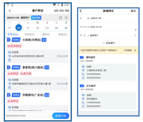 业代根据实际情况,调整拜访顺序以及新增额外拜访。